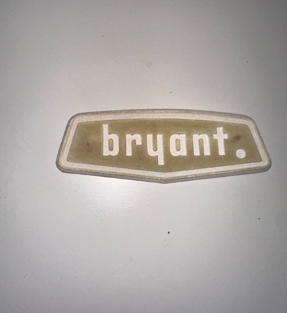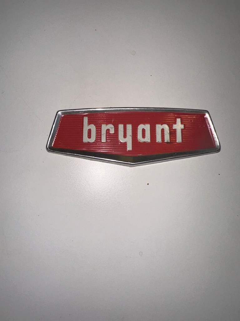 In 1955, Bryant joined forces with Carrier, the company founded by the inventor of modern air conditioning, Willis Carrier. That partnership helped Bryant expand beyond heating and become a true HVAC powerhouse that offered both heating and cooling solutions under one trusted name. Following this merger they got rid of the old pup and rebranded for a look that resonated with the change. These emblems would also embody many of their other products they started offering like water heaters. Bryant produced both an aluminum (Fig. H) and plastic (Fig. I) emblem that could be found on every brand of product they offered. On top of that following into the 80’s Bryant along with other products offered under the Carrier umbrella opted for a square design for their products (Fig. J) and a lettering design (Fig. K).