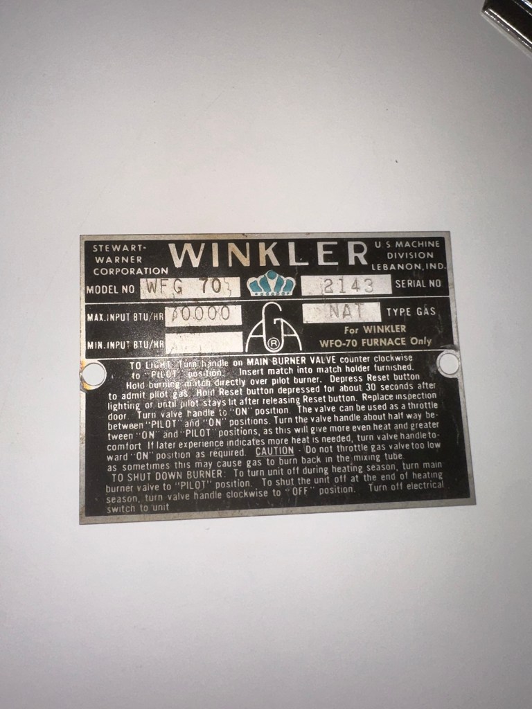 A major turning point came when Stewart-Warner acquired Winkler Furnace, a respected name in oil burner technology. Winkler had already pioneered efficient oil-fired heating in the early 20th century, and under Stewart-Warner’s ownership, their units became even more widespread. Branded as “Winkler by Stewart-Warner,” these furnaces were known for their dependable burners, solid construction, and distinctive industrial look, often with bold logos and brushed-metal control panels. They became a go-to choice for homeowners and technicians alike during the 1940s through the ’60s.